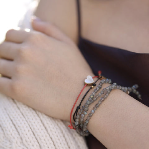 Triple Wrap Skinny Bead Bracelet with Pyrite - Labradorite