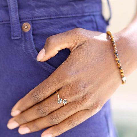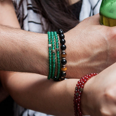 Single Chunky Combo Bead Bracelet - Onyx & Tiger's Eye