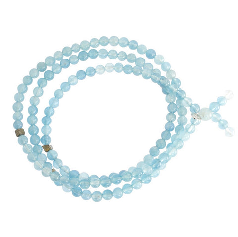 Triple Wrap Skinny Bead Bracelet with Pyrite - Smoky Quartz