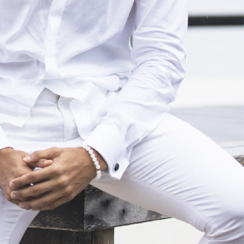 Single Chunky Bead Bracelet with Pyrite - White Jade