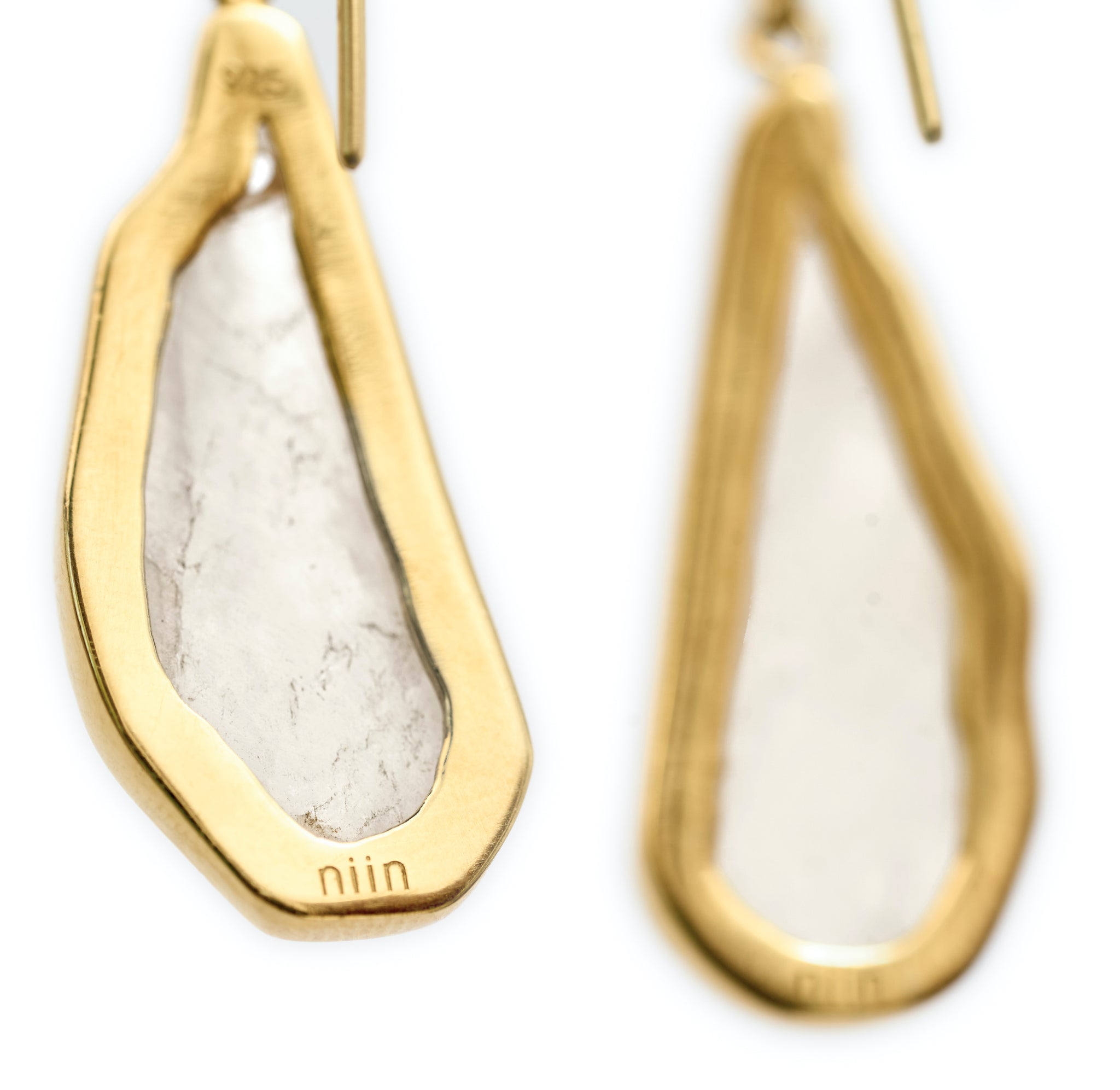Make an impact with these sparkling rock crystal earrings - a perfectly sliced shard set in 18k gold plated recycled silver.