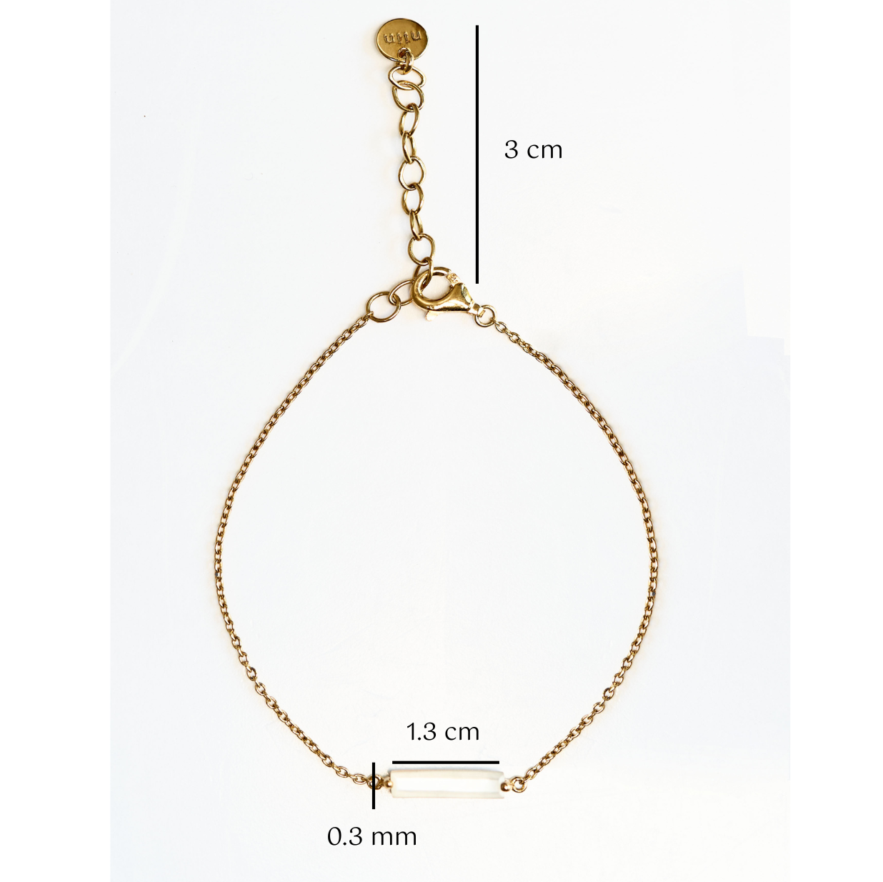 This delicate bracelet showcases a luminous Mother of Pearl slice, elegantly set in recycled silver with 18k gold plating. Its soothing tones promote emotional balance and intuitive flow, making it a perfect piece to wear solo or layered for added radiance.